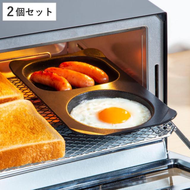 ●魚焼きグリルとオーブントースターで使える、目玉焼きプレートと小型プレートが一つになったコンビプレートです。