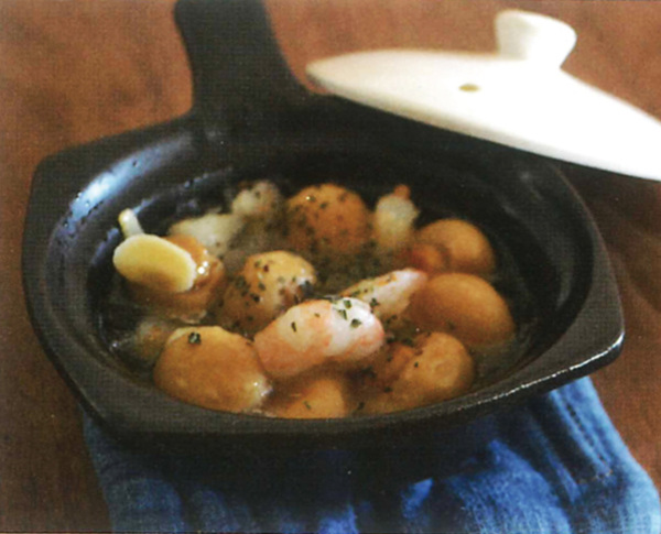 深型なのでソーセージやポテトなど手軽な調理からエビとマッシュルームのアヒージョなどの料理にもお使い頂けます。調理後の盛り付けを気にせず、そのまま器として食卓に出せます。