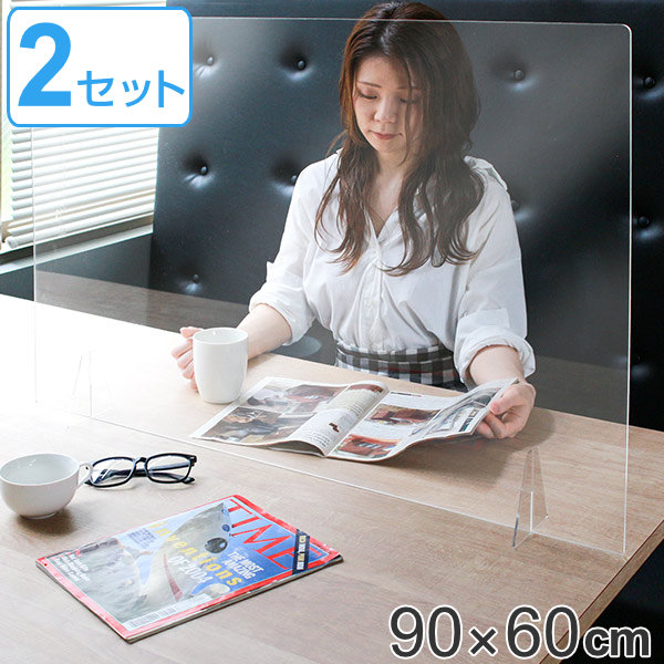 パーテーション アクリルパーテーション 透明 2枚入 幅90×高さ60cm 8050-004 ( 窓なしタイプ ワイド 自立式 クリア アクリル パネル クリアパネル 仕切り 日本製 )