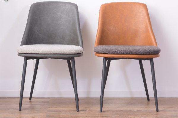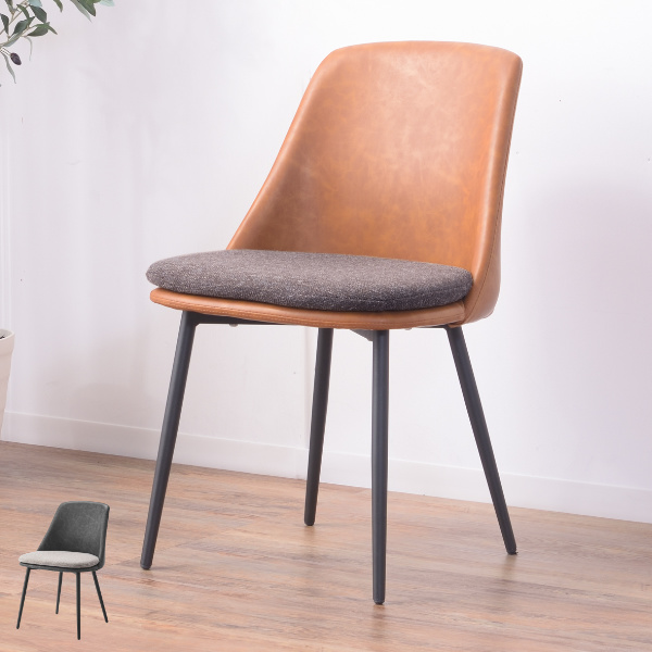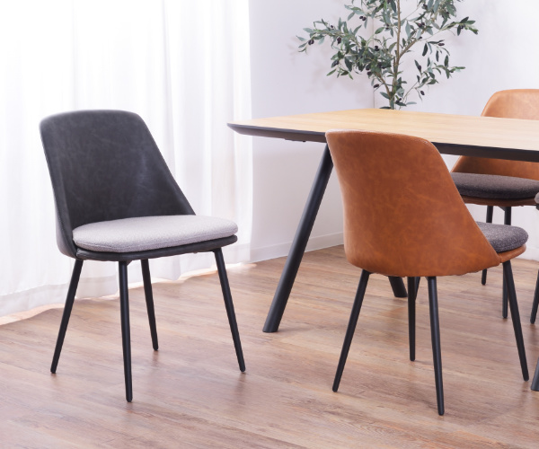レザー風の張地とファブリック素材のクッションを合わせたデザインです。重厚感とヴィンテージ感溢れるチェアは、お部屋に置くだけで目を惹きます。