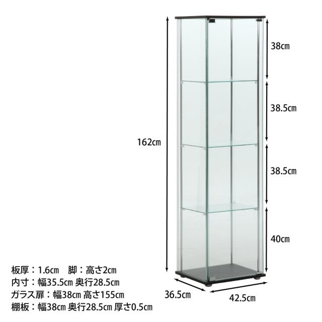 ショーケース 幅42.5cm 4段 コレクションケース ガラス製 ( コレクションキャビネット ガラスケース キャビネット ガラスキャビネット ディスプレイラック ディスプレイ ガラス 飾り棚 おしゃれ )