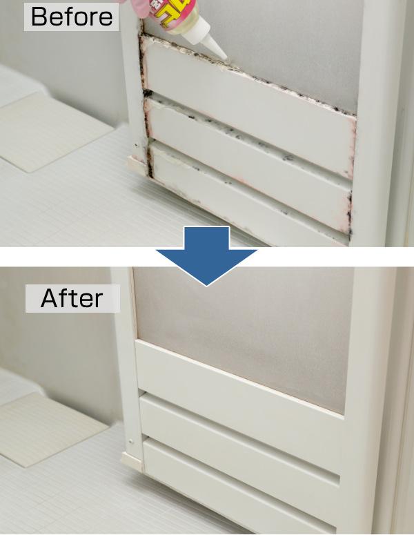 ジェルタイプで液だれしにくく、落としたいカビにしっかり密着して奥まで浸透して落とします。