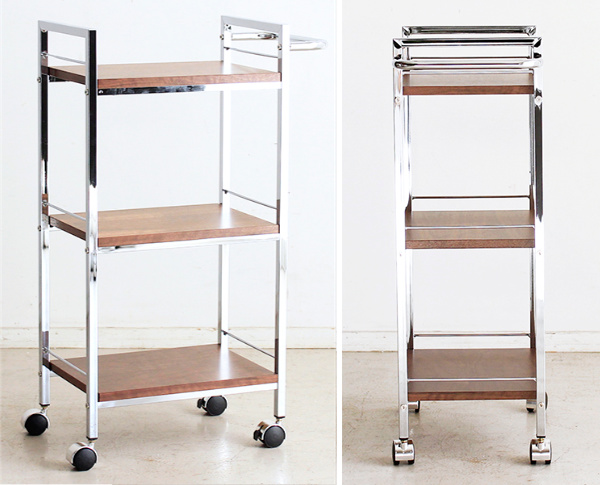 食品の収納やストックはもちろん、料理を盛り付ける時にサイドテーブルとしてお使いいただいても便利です。工夫次第で様々な使い方ができるキッチンワゴンです。