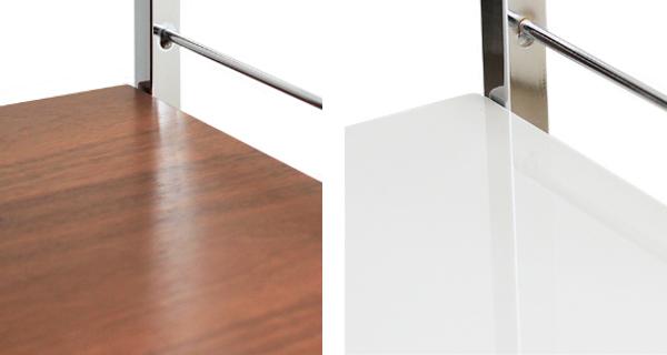 | 材質 | 棚板:ブラウン/ウォールナット突板(MDF・ラッカー塗装) ホワイト/MDF(ポリエステル塗装) フレーム:スチール(クロームメッキ) |