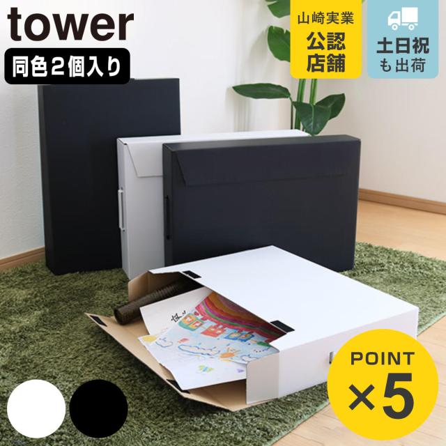収納ケース 作品収納ボックス タワー 2個組 ( メモリアルボックス 収納ケース 押入れ収納 A2 おしゃれ 取っ手付き yamazaki 保管 大容量 作品 収納 )