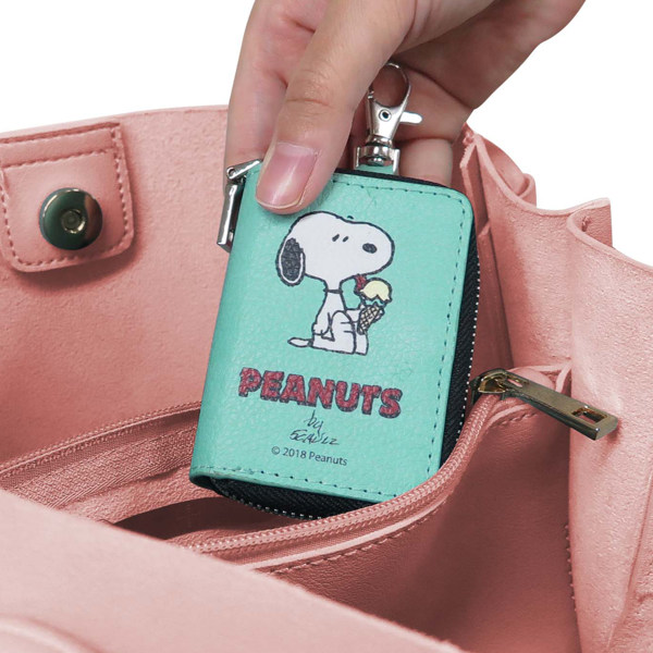 透明ウィンドウでスマートキーを楽々操作出来るスヌーピーのスマートキーケースです。中にはキーリングが付いており、通常のキーケースとしてもお使い頂けます。サイズも小さいので持ち運びにも便利です。