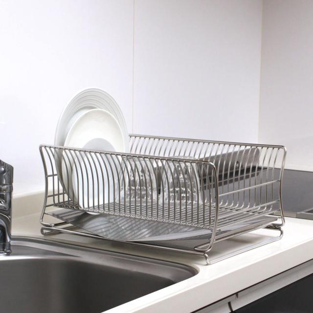 ゆるやかなカーブを描いた特殊な形状のワイヤーが、お皿のフチをしっかり支えてお皿が倒れにくいです。お皿を立てることで空気の通りが良くなり、乾きが速くなります。