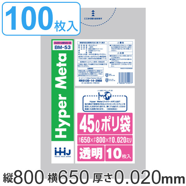 ゴミ袋 45L 80x65cm 厚さ0.02mm 10枚入り 10袋セット 透明 ( ポリ袋 45 リットル 100枚 メタロセン 強化剤 つるつる ゴミ ごみ ごみ袋 まとめ買い LLDPE キッチン 分別 袋 ふくろ 強度 やわらかい 伸びる 掃除 清掃 ポリエチレン )