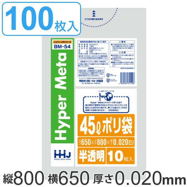 ゴミ袋 45L 80x65cm 厚さ0.02mm 10枚入り 10袋セット 半透明 ( ポリ袋 45 リットル 100枚 メタロセン 強化剤 つるつる ゴミ ごみ ごみ袋 まとめ買い LLDPE キッチン 分別 袋 ふくろ 強度 やわらかい 伸びる 掃除 清掃 ポリエチレン )