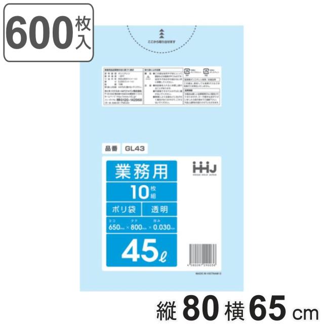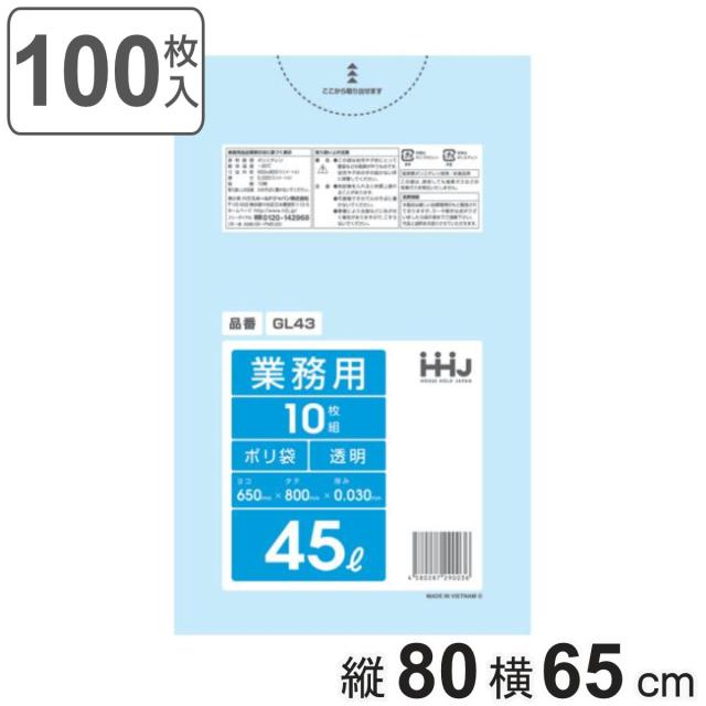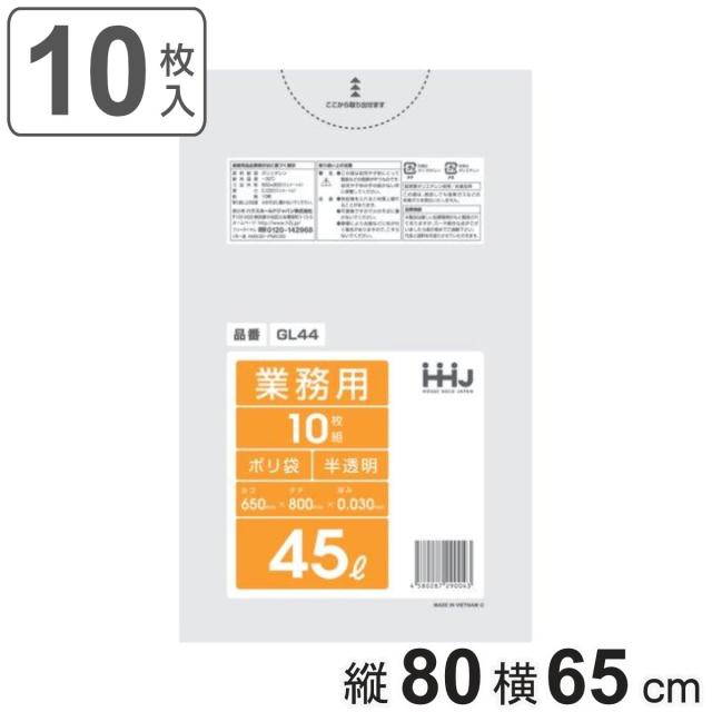 ゴミ袋 45L 80×65cm 厚さ0.03mm 10枚入 半透明 GL44 ( 45 リットル つるつる ゴミ ごみ ごみ袋 LLDPE キッチン 分別 袋 ふくろ やわらかい 伸びる 掃除 清掃 ゴミ箱 仕分け 直鎖状低密度 ポリエチレン 低密度ポリエチレン )