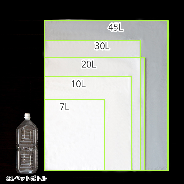 このページの商品は縦80cm×横65cm×厚さ0.030mm(45L)の袋です。