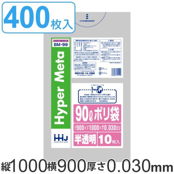 ゴミ袋 90L 100x90cm 厚さ0.03mm 10枚入り 40袋セット 透明 ( ゴミ袋 90 リットル 400枚 まとめ買い つるつる メタロセン 強化剤 ゴミ ごみ ごみ袋 LLDPE キッチン 分別 袋 ふくろ 強度 やわらかい 伸びる 掃除 清掃 )