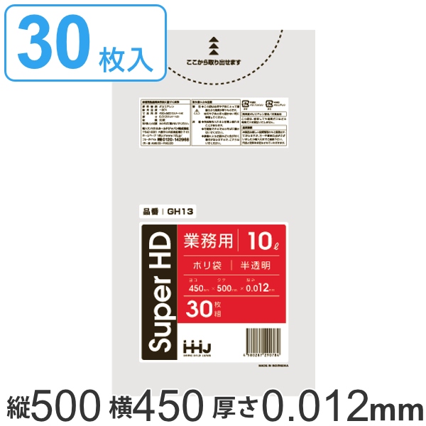 ポリ袋 10L 50x45cm 厚さ 0.012mm 30枚入り 半透明 ( ゴミ袋 10 リットル シャカシャカ しゃかしゃか ゴミ ごみ ごみ袋 HDPE キッチン 分別 袋 ふくろ 掃除 清掃 ゴミ箱 洗面所 脱衣所 リビング 仕分け )