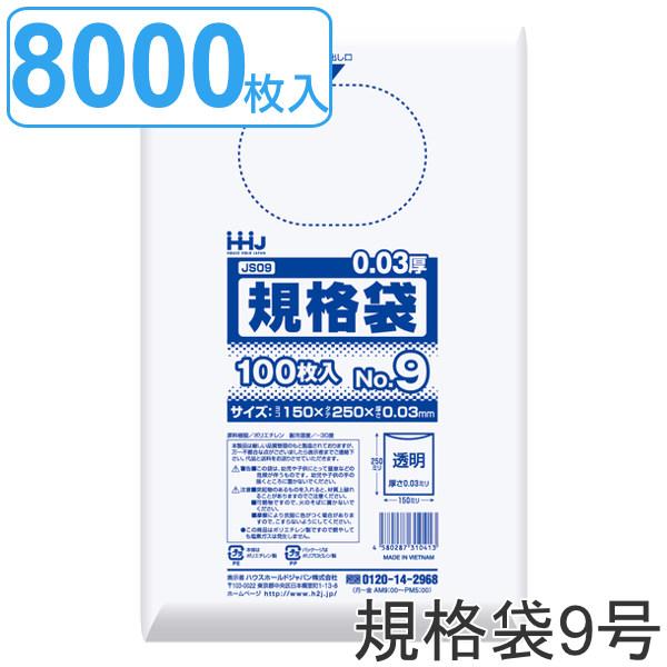 ゴミ袋 規格袋 9号 食品検査適合 厚さ0.03mm 100枚入り 80袋セット 透明 ( ポリ袋 100枚 クリア 80袋 25×15cm 食品 キッチン 台所 調理 ごみ袋 A5 透明ポリ袋 小分け袋 ポリエチレン 袋 規格 25cm 15cm )