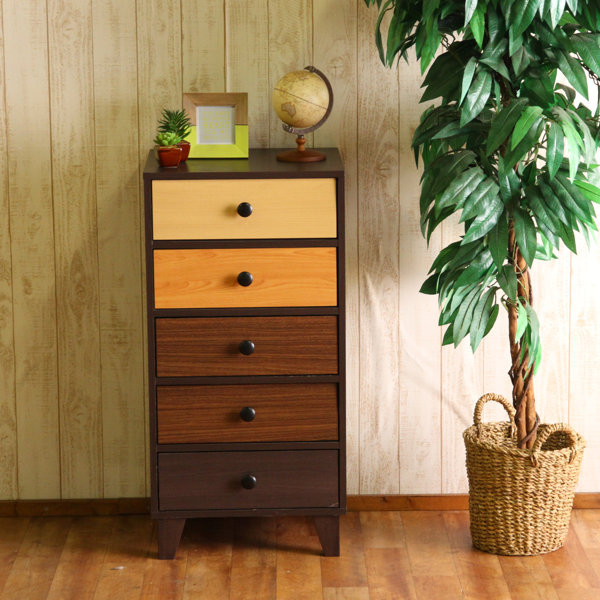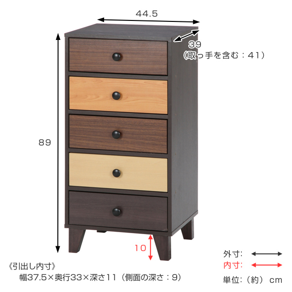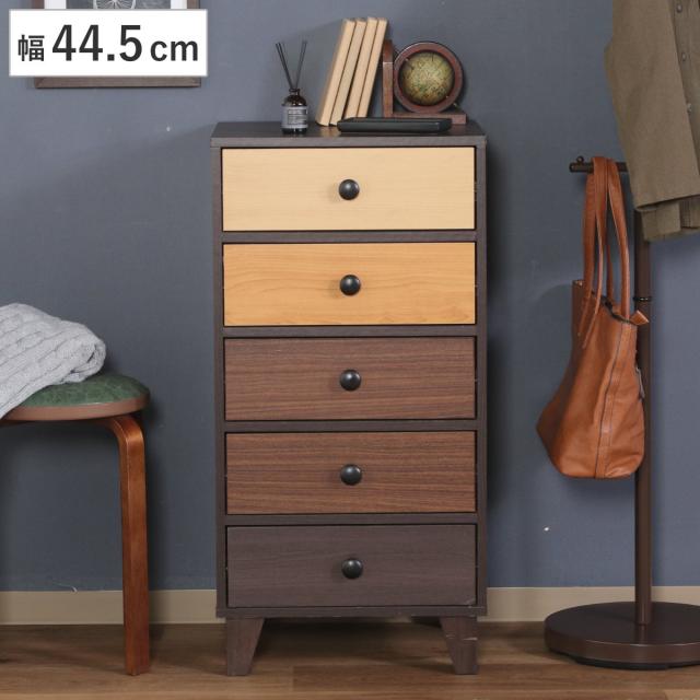 チェスト 幅44.5cm 5段 北欧風 4カラー前板 ( サイドチェスト リビング収納 たんす タンス スリム リビングボード リビングチェスト 収納 サイドボード 木目 シンプル カラフル 北欧 茶色 おしゃれ )
