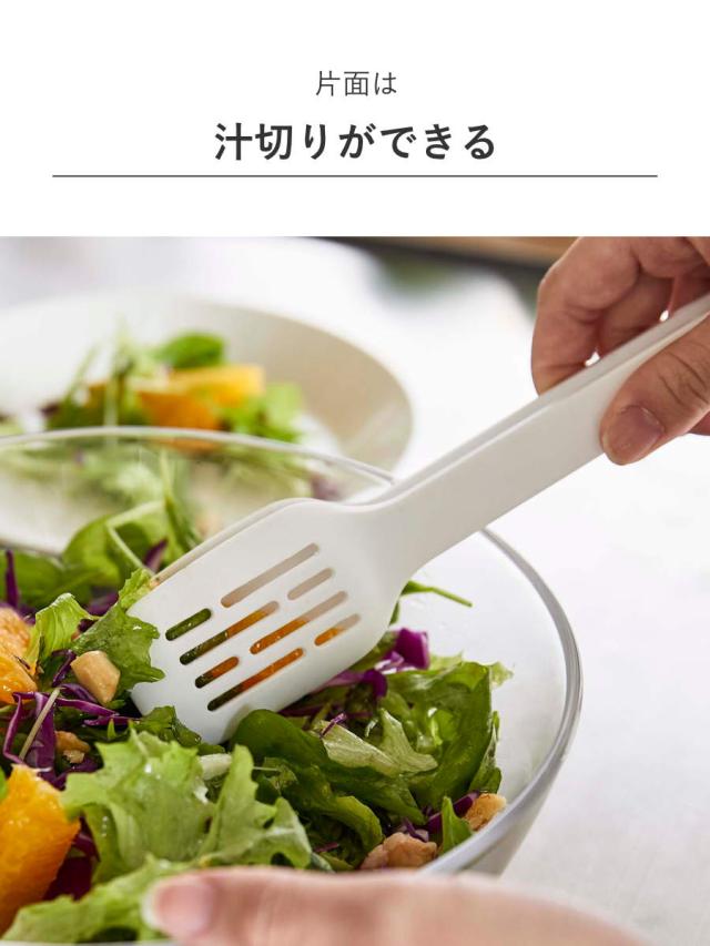 片面にスリットがあるので汁切りができ、サラダの取り分け時などに余分な水分をを落とすことができます。