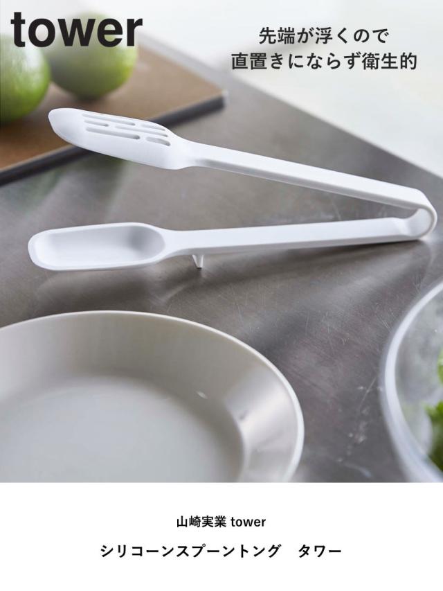 山崎実業 tower シリコーンスプーントング タワー ( 4903208051934 シリコーン 調理 キッチンツール 水切り 汁切り towerシリーズ 白 黒 取り分けトング 万能トング yamazaki )