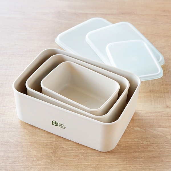 3種類のサイズ違いの長角容器は重ねることができるので、使い終わった後や、収納する際にかさばりません。サイズ違いで揃えて、おかずとご飯を分けたり、温めるものと冷たいままで食べたい食材を分けるなど、ランチボックスとして使うのもおすすめです。