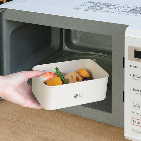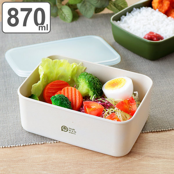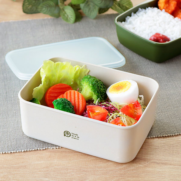 抗菌効果が期待されるひのきが含まれた素材「ひのきのぷら」を使用したお弁当箱です。環境にもやさしく、機能面も優れたエコ素材です。容量は870mlで、様々な使い方ができる便利なサイズです。