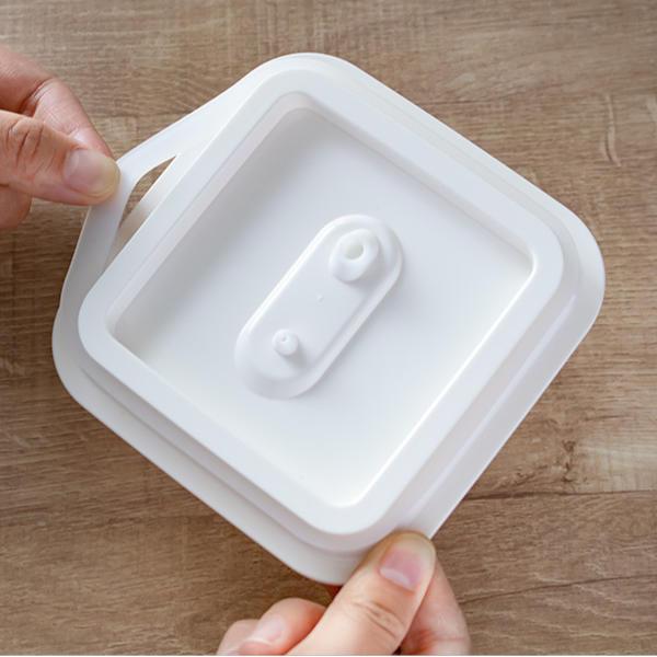 内側にパッキンが付いているので、密閉度が高まり、汁もれを防いでくれます。また、パッキンは取り外せるのでお手入れしやすいです。