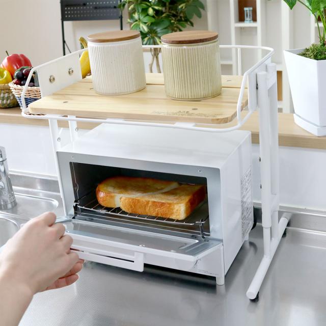 レンジ上ラック マルチラック スチールフレーム 幅43cm ( 高さ調節 トースターラック キッチンラック カウンターラック 伸縮 収納ラック 収納 キッチン収納 リビング収納 収納棚 棚 ラック ステンレス 黒 白 おしゃれ )