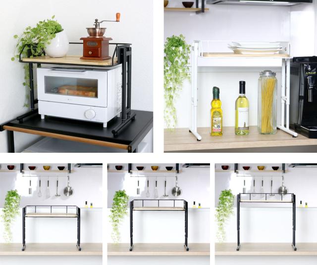 《 LH5984 カウンター上 高さ調整 伸縮キッチンラック 多目的ラック 多目的収納ラック フリーラック スチールラック 家電収納 約 幅 40 45 奥行 30 cm センチ スタイリッシュ シンプル ブラック ホワイト ナチュラル 木目 キッチンホワイト化 キッチン白化 ホワイトインテリア モノトーン 韓国風インテリア 淡色女子 足す 付け足す ちょい足し キッチン トースター ケトル リビング 机上 ひとり暮らし 一人暮らし 》