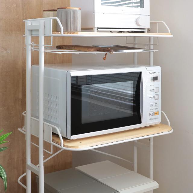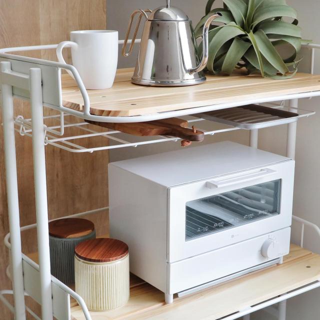 棚部分の耐荷重は約25kgで、電子レンジやトースターなどの重さのあるキッチン家電も安心して置くことができます。