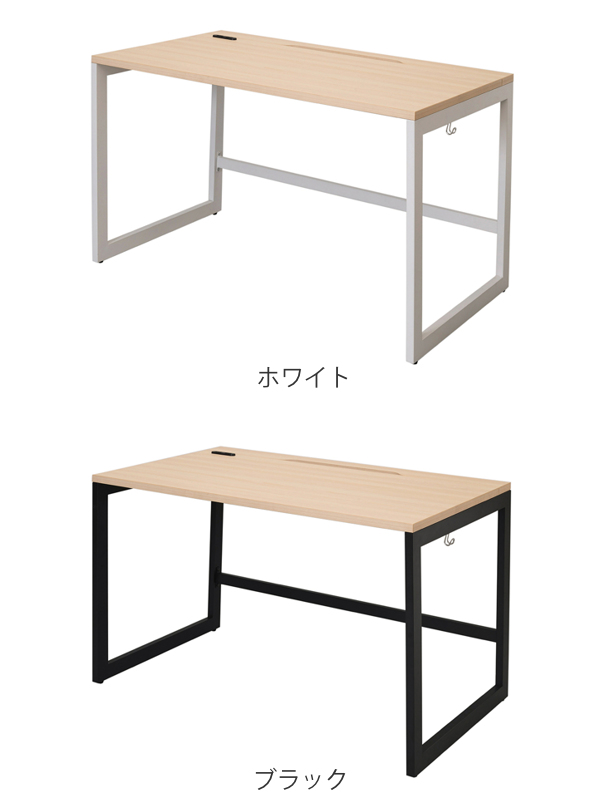 | 材質 | 天板:低圧メラミン樹脂化粧木質ボード、PVCエッジ フレーム・脚部・配線ボックス:スチール(粉体塗装) アジャスター:PP フック:スチール(クロームメッキ仕上げ) コンセント:合成樹脂 |