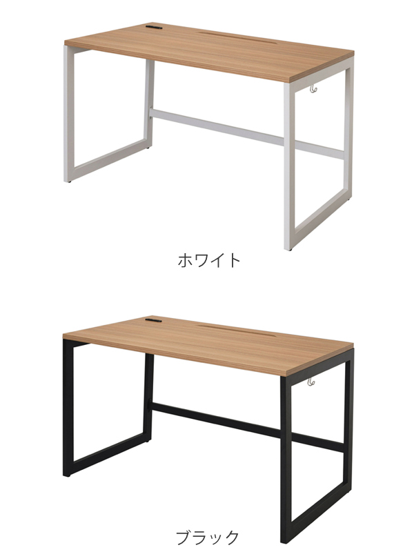 | 2口コンセント 天板には2口のコンセントが付いていて、机上でのモバイル端末の充電もスムーズに行えます。 | フック付き デスクサイドに、手荷物等を掛けられるフックが取り付け可能です。 |