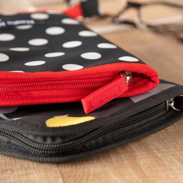 印鑑、現金、お薬などの細々した小物の収納に役立つファスナーポケットが付いています。
