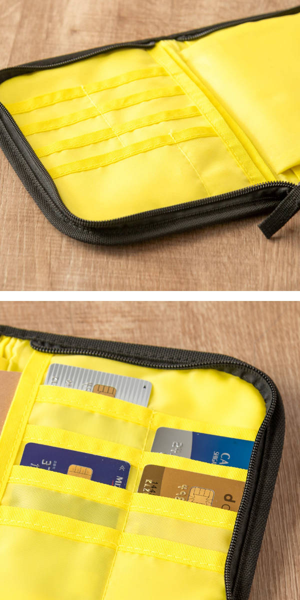 ケースの両側に保険証や診察券などカードが15枚収納できるポケットが付いています。