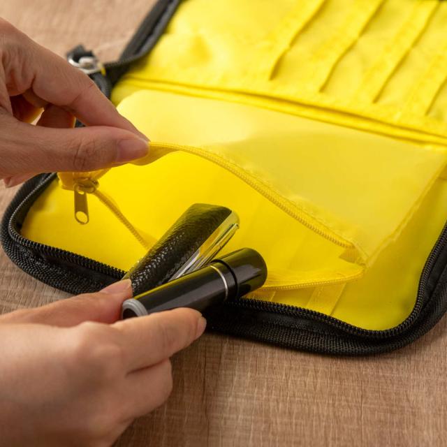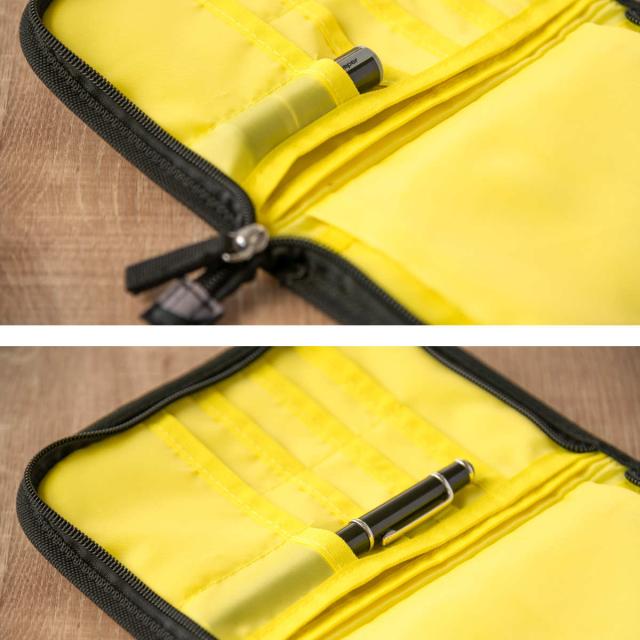 バッグの中で迷子になりがちなペンも一緒に収納できるので、急な書き物の際もサッと取り出して使えます。ペン以外に印鑑入れとしてもお使いいただけます。