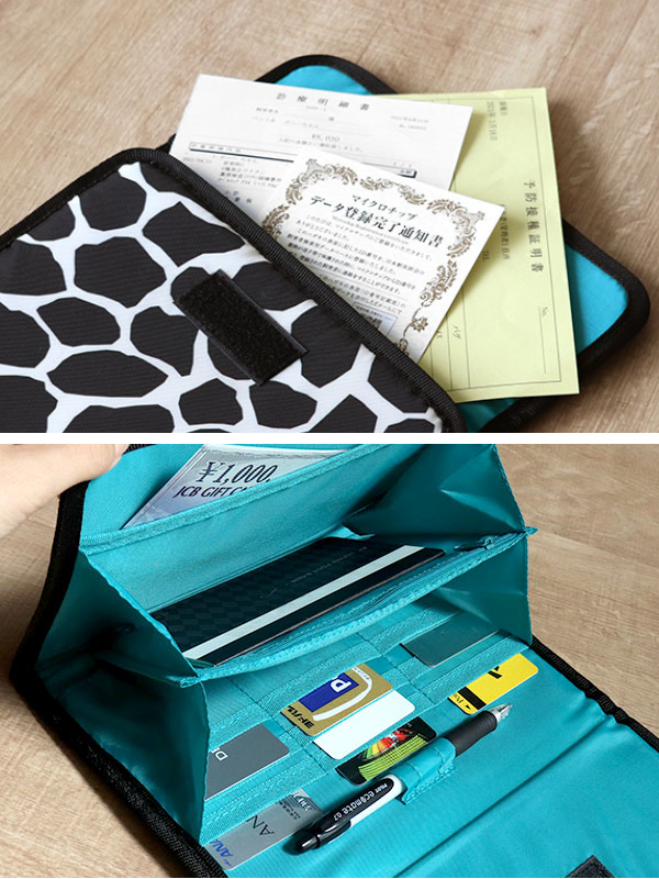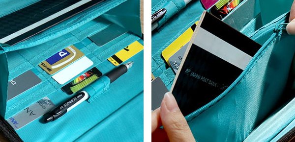 | カードポケット 診察券やカード類が9枚入ります。 | ファスナーポケット 小銭や領収書などを保管できます。 |
