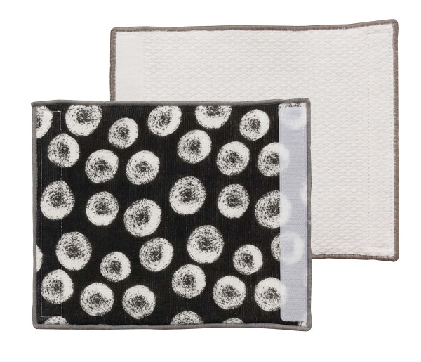 面ファスナーで着脱が簡単です。表面は可愛らしい柄のガーゼ、裏面は綿生地のリバーシブル仕様なので気分に合わせて付け替えができます。