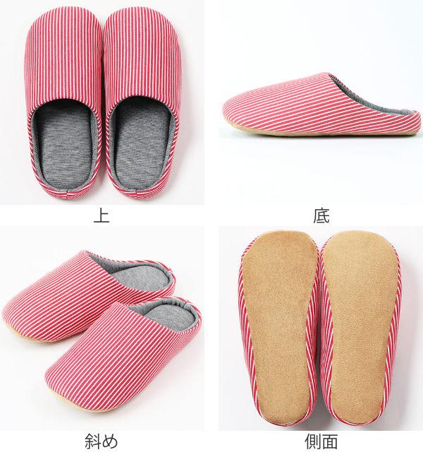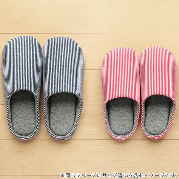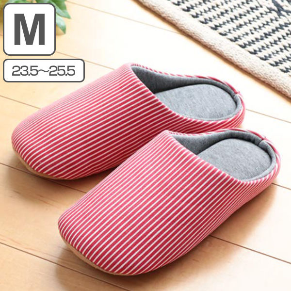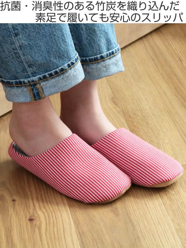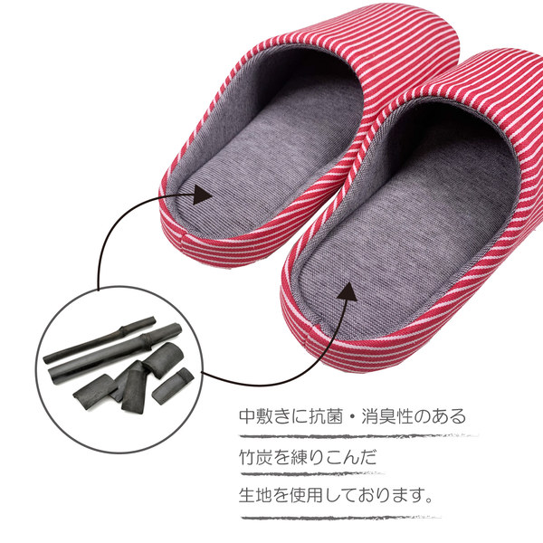 スリッパ M 23.5〜25.5cm 抗菌 消臭 竹炭 レディース ( ルームシューズ ルームスリッパ 室内 チャールスタイプ 前詰まり 吊り込み 静穏設計 来客用 ボーダー柄 部屋 部屋履き )