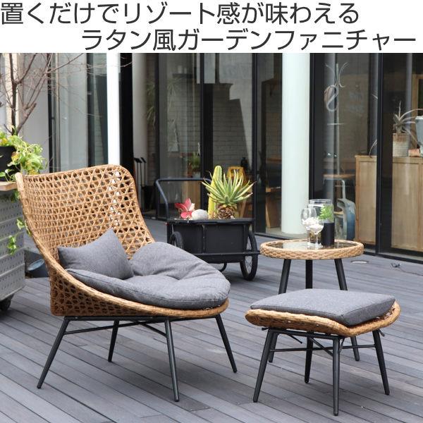チェア 座面高35cm オットマン付き ラタン風 籐家具風 パーソナルチェア アジアン リゾート 椅子 ( ガーデンチェア チェアー 屋外 屋内 ベランダ ガーデン ウッドデッキ イス いす 1人掛け ラタン調 デザインチェア )