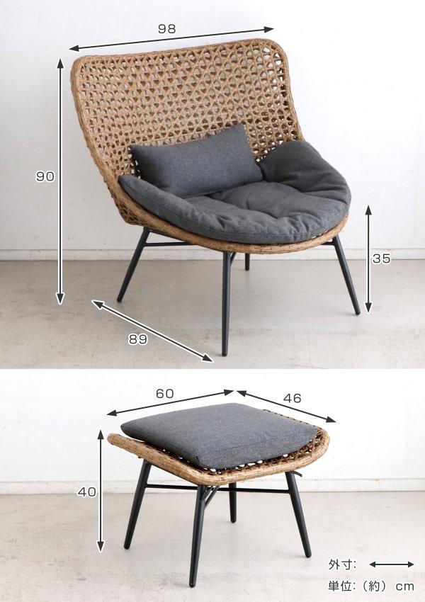 | サイズ | 約 幅98×奥行89×高さ90(cm) 座面高:約 35(cm) オットマン:約 幅60×奥行46×高さ40(cm) |