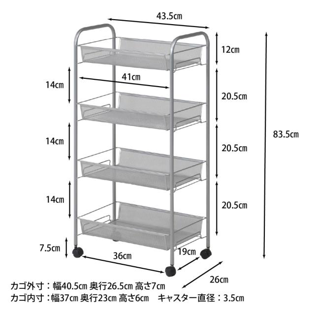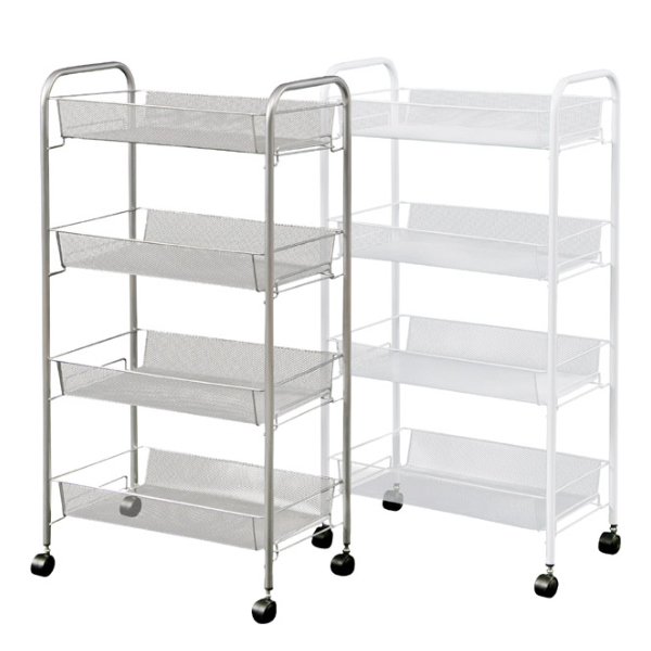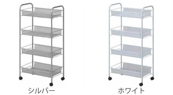 キッチンワゴン 幅43.5cm 4段 メッシュラック キャスター付 ( キッチン収納 収納 メッシュ ラック 収納ラック キャスター キッチン 台所収納 カゴ シルバー ホワイト おしゃれ )