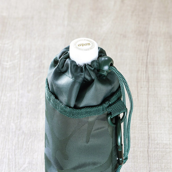 開口部は巾着タイプなので、ペットボトルを入れたまま飲むことができ、ボトルが飛び出る心配もありません。