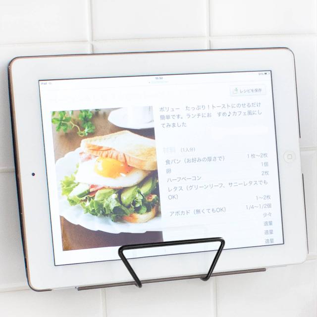 壁に取り付けて色々な物を掛けられるワイドホルダーです。浴室だけでなく、キッチンなどでも活躍。タブレットを置いてレシピ動画を見ながら料理をしたりできます。水に強いので、シンク内に貼ることも可能。浮かせて収納ができるので、底がぬめらずいつまでも衛生的にお使いいただけます。
