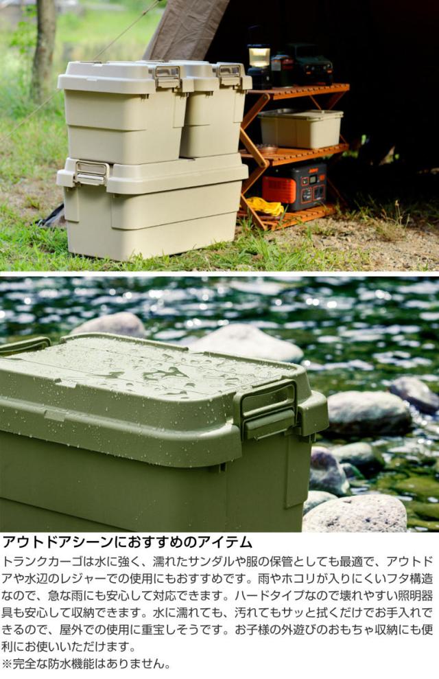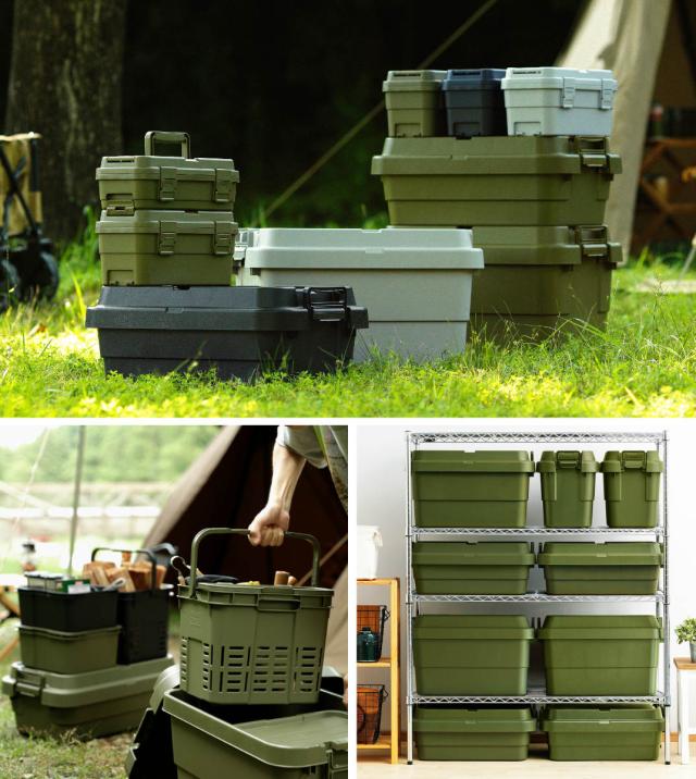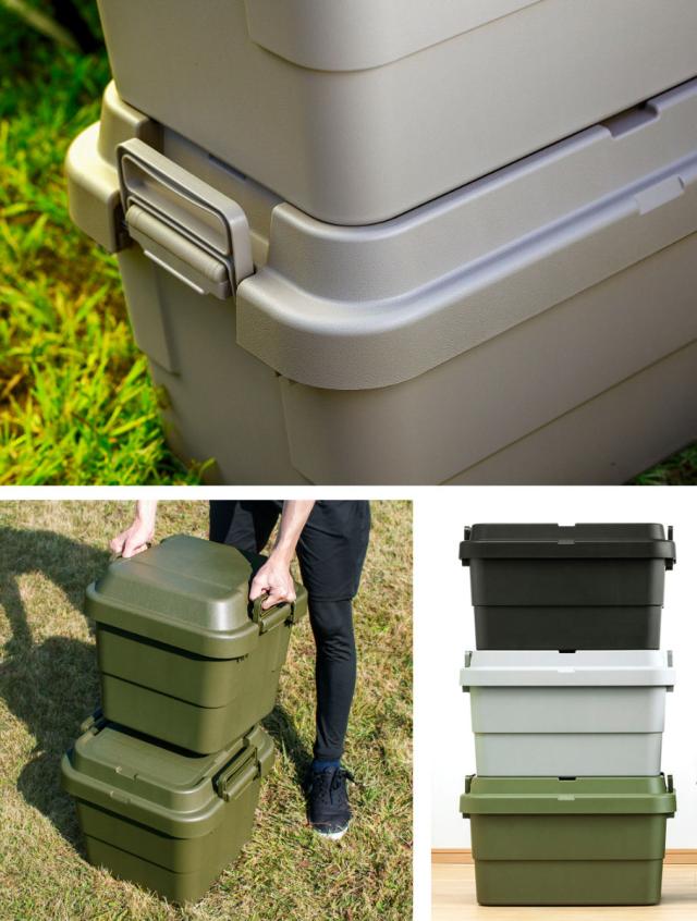 耐荷重100kgの頑丈さが特徴の『トランクカーゴ』は、「座れる」「しまえる」「積み重ねられる」「持ち運べる」の多機能なフタ付き収納ボックスです。無骨でシンプルなデザインで、屋外・屋内問わずに様々なシーンで活躍してくれる万能収納アイテムです。