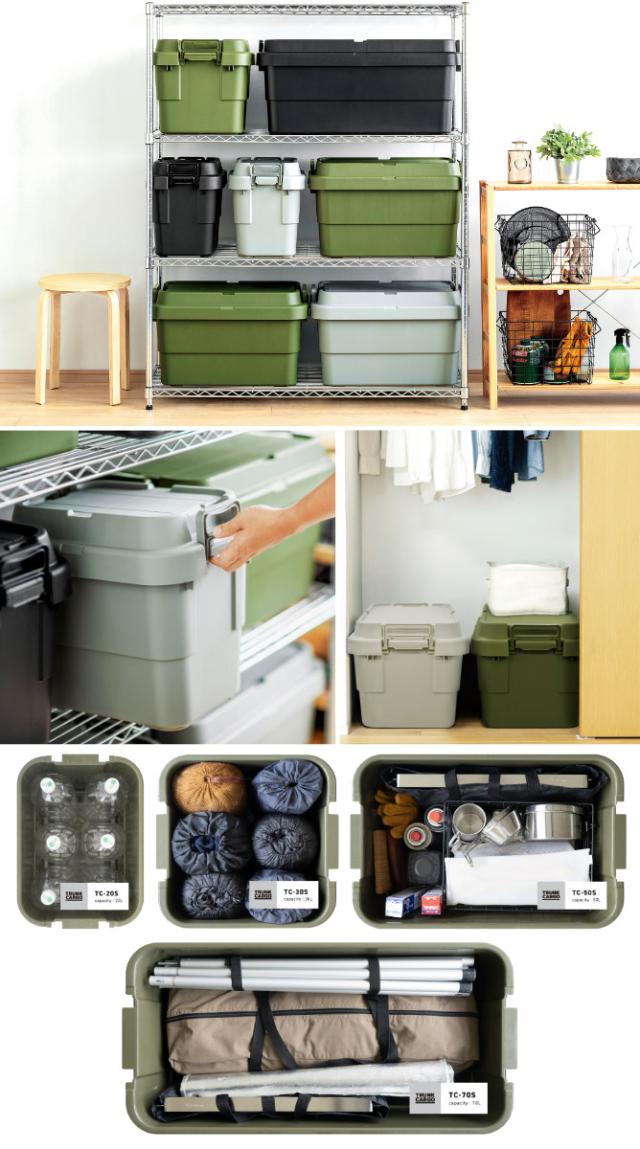 トランクカーゴシリーズは、あらゆるシーンに合わせて使える幅広いサイズ展開です。用途に合わせてサイズ違いや同サイズで揃えることで、アウトドアシーンもお部屋でも統一感のある、快適な収納空間をつくることができます。より収納の幅を広げてくれるアイテムも展開されているので、お好みの組み合わせにアレンジして自由に楽しむことができます。
