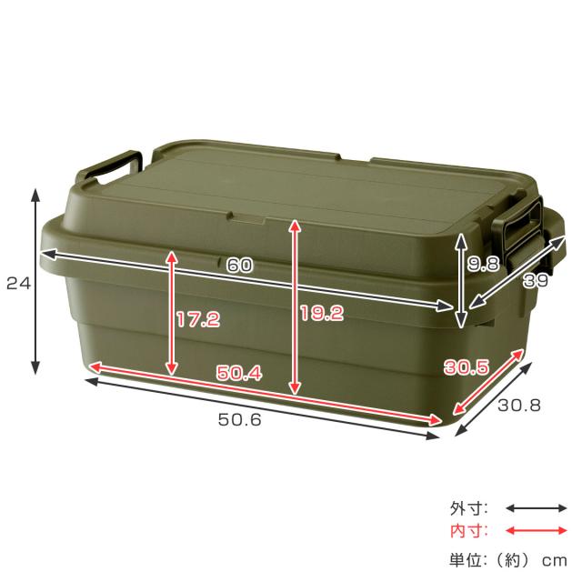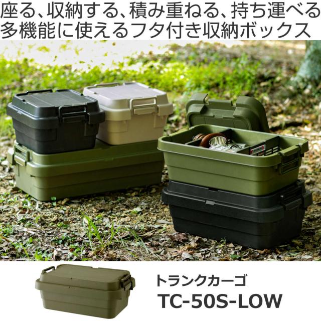 収納ボックス トランクカーゴ LOW TC-50S 30L 幅60×奥行39×高さ24cm ( 座れる 屋外 スタッキング 収納 ボックス ケース 頑丈箱 フタ付き コンテナ 工具箱 プラスチック アウトドア 持ち手付き 日本製 おしゃれ 車載 )