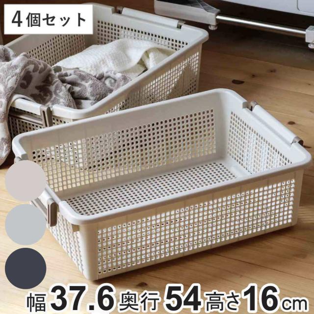 バスケット LS 幅37.6×奥行54×高さ16cm スタッキング 4個セット ( 収納ケース 積み重ね 収納ボックス 持ち手付き 収納 ケース ボックス 収納バスケット プラスチック ストッカー クローゼット収納 日本製 )