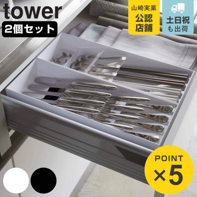 tower 立体斜めカトラリーケース タワー 同色2個セット ( 山崎実業 タワーシリーズ カトラリーケース カトラリー収納 カトラリートレー 引き出し収納 カトラリー ケース 収納 斜め サイズ調整 tower 山崎実業 キッチン 山崎実業 tower キッチン)