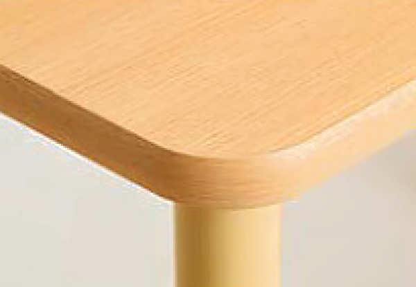 テーブルの側面は、当たりの柔らかなソフトエッジを使用しています。立ち上がりの際の体や手のひらにも優しい触り心地です。