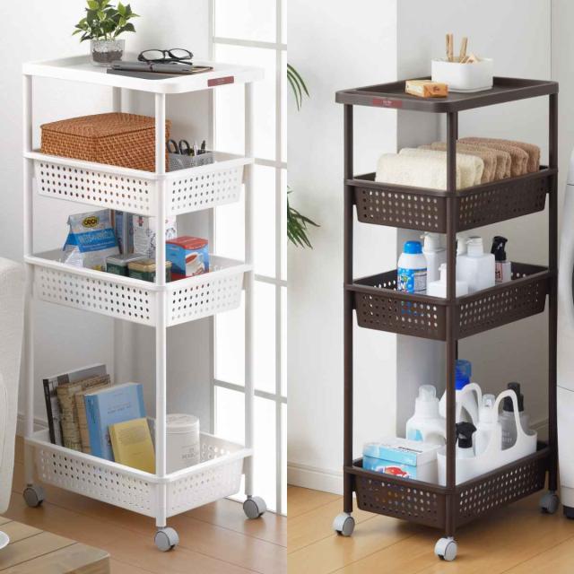 《 LH8580 キッチン ワゴン 白 茶 ホワイト ブラウン すき間 収納 すきま 隙間 スキマ バスケット型ワゴン ワゴンテーブル かご カゴ バスケット メッシュかご 野菜ストッカー ストッカー ストック 野菜収納 食品収納 食器収納 小物収納 マルチ収納 収納用品 洗面所収納 脱衣所収納 サニタリー収納 台所 洗面所 脱衣所 無地 シンプル シック ナチュラル おすすめ オススメ 便利 役立つ 簡単組立 簡単組み立て 簡単組立て 組立簡単 組み立て簡単 組立て簡単 幅32..5 奥行48cm 高さ101cm 四段 》