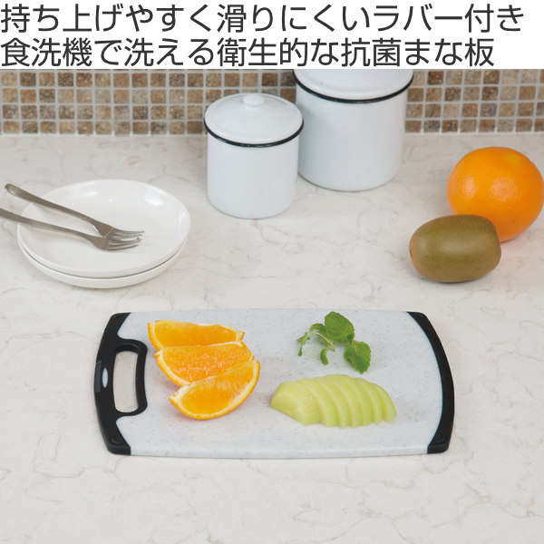 まな板 M 食洗機対応 石目調 おこしやすいラバー付耐熱抗菌まな板 ( まないた マナイタ 俎板 カッティングボード 抗菌 M サイズ 滑り止め 家庭用 両面使用 抗菌まな板 SIAA 耐熱 軽量 ポリエチレン )