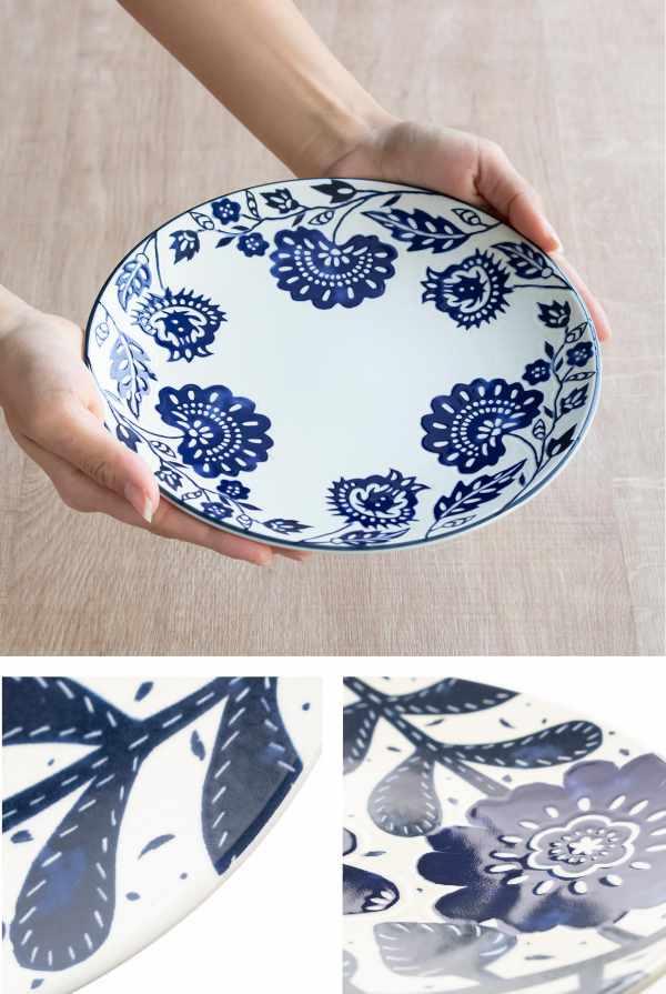 藍色で描かれた草花デザインが和食にも洋食にも合わせやすく、食卓を爽やかに見せてくれます。オムライスやパスタ、カレーはもちろん、おかずを少しずつ盛り付けてワンプレートにするのもおすすめです。