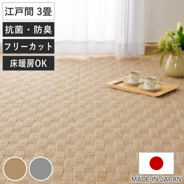 カーペット ラグ 江戸間3畳 平織カーペット メテオ 抗菌 防臭 カット可 ( 176×261cm ラグマット 江戸間 3帖 日本製 マット カットできる 敷き詰め タフトカーペット ぽこぽこ触感 平織り 床暖対応 ペット )